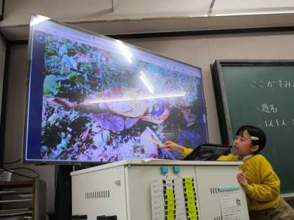 学校にある隅や自然材の形や色などを基に、すみかをつくりました。葉や石、枝や花や実など色々な物を組み合わせてつくっていました。つくっていく中で、「橋になった」「ブランコみたいになった」「これとこれを組み合わせると面白いよ。」と感じ取ったり考えたりし、自分の見方や考え方を広げていました。