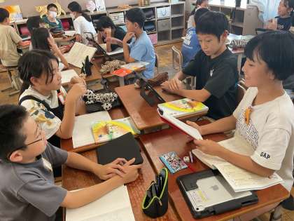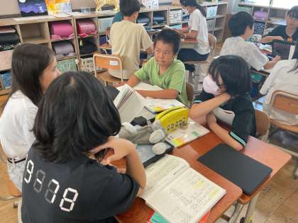 夏休みも明け、久しぶりに会う友達と楽しそうに過ごしています。そのような中、対話活動として「自分がいちばん大事にしたいもの」について交流しました。相手の考えを引き出すために質問を工夫し、新しい視点の発見や自分の考えの深まりについて考えていました。