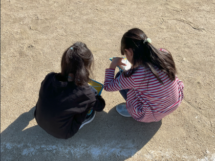 子どもたちは実際に地面に触れ、温度や湿り具合などの違いを確かめながら観察することができました。