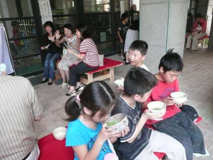 お茶席の様子です。今年度できた茶道部の児童がこれまで練習してきた成果を披露しました。PTAの皆さんや地域の皆さんにはいろいろとご指導いただいたりお手伝いいただいたりしました。本当にありがとうございました。