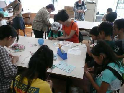 手作りコーナーの様子です。ステンシルやミサンガなど楽しみながら作品作りをしました。