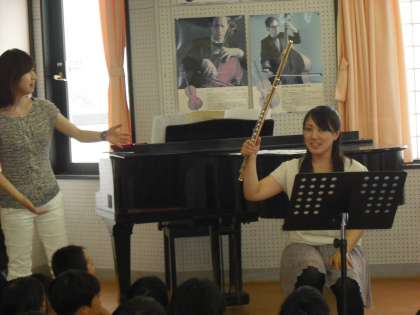 音楽の特別授業で,アンサンブルエクスユニットによる生演奏を鑑賞しました。「春」や「愛の夢」などなじみのあるクラッシックが目の前で奏でられるのを聴きました。ゆったりとした時間が流れ,心穏やかになれるひと時でした。