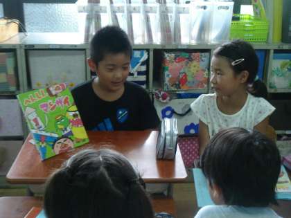 ペアで練習したあと,次の時間にグループで紹介しあいました。本を見せてみんなに紹介するとよくわかる,次に読んでみたくなるということを学習しました。