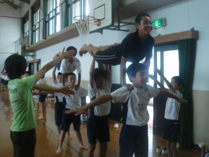 6年の子どもたちにとって小学校最後の運動会の華となる組体操は,みんなで成功させて観客の心を打つ姿を見せたいという気持ちが強く表われます。練習にも力が入り,けがのないようにみんなで声を掛け合いながら練習しています。