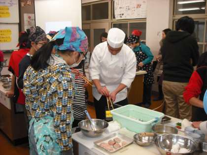 料理アカデミィー会員の「瓢亭」の高橋義弘氏による食育研修会を持ちました。6年児童に「だし巻きたまご」と「かぶら蒸し」の料理を指導していただいた後,日本料理に学ぶ食育カリキュラムについてお話しいただきました。味覚教育・食材教育・料理教育を柱に指導することの大切さや日本料理の極意を教えていただきました。