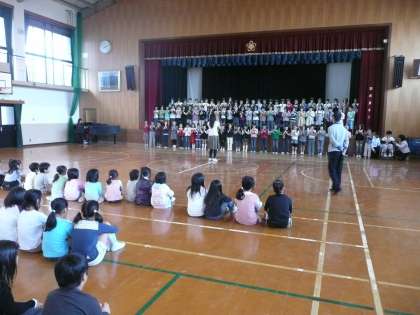 今日は,左京南支部の学童音楽会があります。本校からは3年生が出場します。午前8時より体育館で直前公開リハーサルがありました。朝一番ではありましたが,しっかりと本番を前に最後の仕上げができました。春秋座でもこれまでの練習の成果を発揮してくれることと思います。