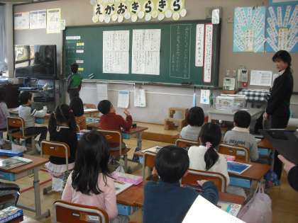 1年生は国語で「どうぶつの赤ちゃん」の学習をしています。教科書で,ライオンやシマウマの赤ちゃんについて学習した後,今度は自分の好きな動物の赤ちゃんの本を読み,とっておきのひみつを友達に紹介します。今日はひみつをカードにまとめました。教室の後方掲示板に,すてきな「赤ちゃんランド」ができあがっていきます。