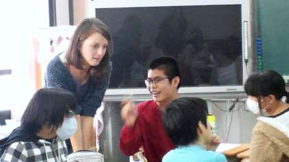 最後は自分たちで作った自己紹介カードを紹介して,学習を締めくくりました。