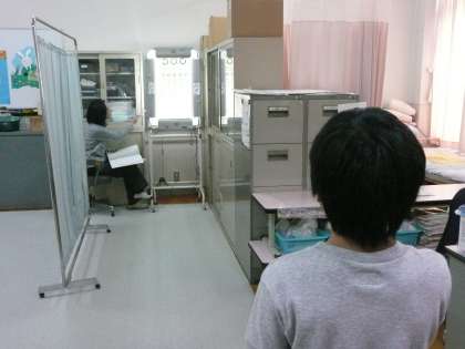 今日から,今年度2回目の視力検査が始まりました。学年ごとに11月にかけて順番に行っていきます。今日は6年生の2クラスで実施しました。春に比べて視力が低下している子が少し目立ちました。テレビの見すぎやゲームのしすぎ,勉強するときの照度や採光に気をつけて目にやさしい環境づくりをしていってほしいと思います。