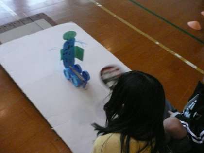 次に,図工の時間に作ったウインドカーを紹介し,一緒にうちわを使って動かしました。最後に「BINGO」の歌を歌いました。3年生がいきいきと活動している姿がとても印象的でした。多数の保護者の皆様にご来校いただきありがとうございました。
