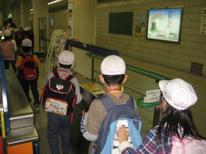 一人ひとりが上手に乗車券を買うことができ,自動改札機に入れてホームへ向かいました。「やったことがあるし,かんたんや。」と言う子もいましたが,初めての子も多く,ここでも慎重に自動改札機に切符を入れていきました。京都駅で降りるときは,乗車のときに比べてすいすいと進みました。
