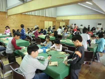 けがをしないように、注意深く、真剣に、竹を削りました。