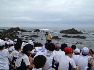 観察前には、明日訪問する水族館の方に、観察の仕方を教えてもらいました。ヒトデの観察実験も体験できました。