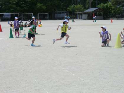 走るの大好き,リレーになるとさらに,全力をふりしぼり,バトンをつなごうとしています。