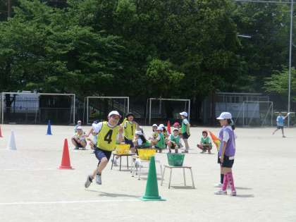走り終えたあとの子どもたちの表情は,走り切った満足感とともに額の汗が輝いていました。