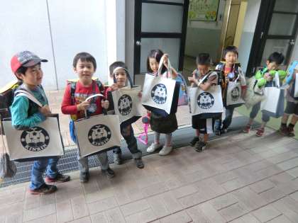 錦林校のキャラクターが描かれた本校だけのオリジナル図書バックです。