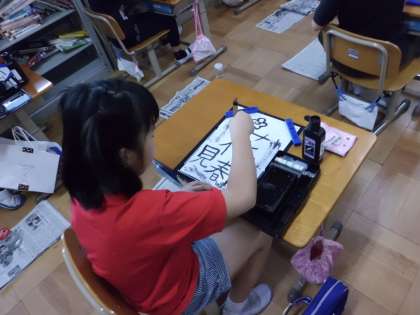 今日は3年生が,初めての習字の学習をしました。ふでのおろし方や墨のすりかたや後片付けのしかたを学習しました。今日は字を書くといるよりも筆で書く感覚を体験しました。準備や後片付けもうまくできたかな?来週も続きの学習がありますよ。今日習ったことをしっかり覚えておいてがんばりましょうね。