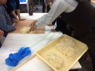 見事に、うどんが打ち上がり、包丁で、切り分けました。