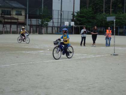 6月7日(土),PTA主催の自転車安全教室が行われました。子どもたちは,自分の自転車を家からもってきて,運動場で実際に乗ってみて,安全な乗り方について学びました。また,図書室では,自転車の安全な乗り方や交通ルールについて,問題をときながら学習しました。