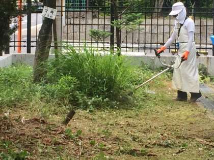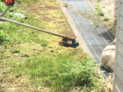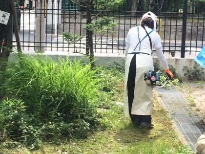 虫対策や,砂利等の飛散防止をしながらの草刈りです。