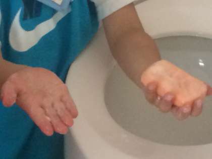 薬用せっけんを使って,手洗いを しっかりと。