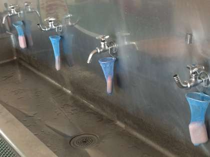 感染症予防に,また食中毒の予防に,校内の手洗い場に薬用せっけんを置きました。