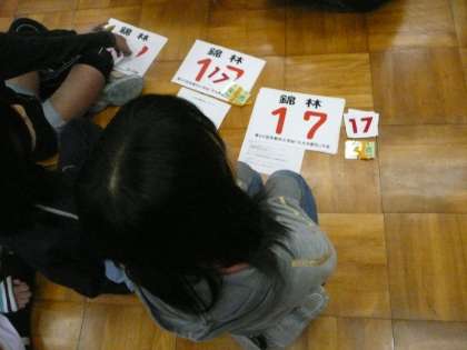 いよいよあさっては本校6年生児童が出場する大文字駅伝大会です。大会を前にして今日は6年生の先生から明日の開会式とあさっての大会当日についてお話がありました。また,当日つけるナンバーカードも渡されました。錦林小学校のナンバーカードは,17です。これまでの練習の成果を存分に発揮し,スタートからゴールまで襷をつないでいってほしいと思います。