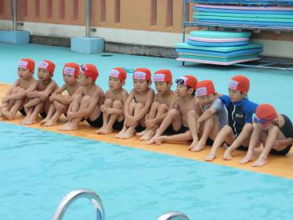 この日のプールでは,水中で目が開けられるか,先生の指が何本立てられたか,水中で目を開けて,数えてみました。
