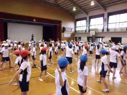 体育館で背泳ぎ??体育館から「背泳ぎ!!」と繰り返す声が聞こえてくるので覗いてみたら,運動会の練習でした。3年生は,団体演技にも挑戦!ということでその振付の練習をしていたのです。(背泳ぎはその掛け声でした。)みんな真剣な表情でがんばっていました。本番にむけてこれからもがんばってほしいですね。