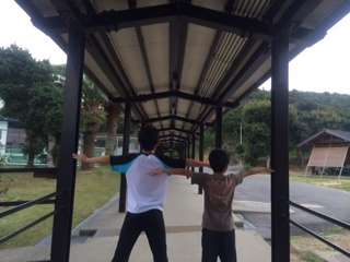 二枚目の写真が、渡り廊下の柱と柱の内側の写真です。答えは、「ない」です。