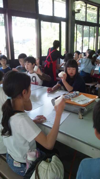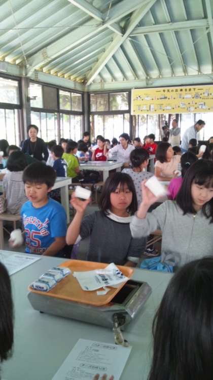 五分間ふりつづけます。なかなか奥が深いバターつくりの様子です。
