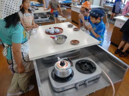 5年生から始まる家庭科の学習。今回は家庭科室でお茶を入れました。家庭科室を使うのも初めてなので,使う上での注意を確認してから学習を始めました。十分に気をつけながらガスコンロをお湯を沸かし,手順に沿ってお茶を入れていきました。おいしくいただくことができました。担任の先生にも飲んでほっこりしてもらいました。これからの学習も楽しみです。