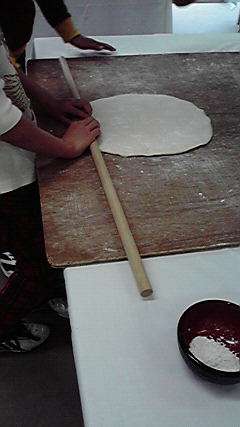 おはようございます.修学旅行2日目も好天に恵まれ,今日の活動がスタートしました.写真は昨夜のうどん手打ち体験の様子です.