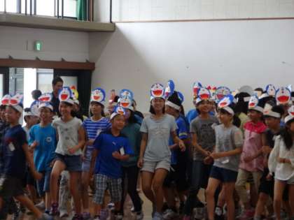 6年生はみんながドラえもんのお面をかぶって登場。なかにはのび太やジャイアン,しずかちゃんも。楽しい演出に海上は大盛り上がり。3部合唱した「夢をかなえて」はさすが最高学年。6年生の姿にみんなあこがれたことだと思います。
