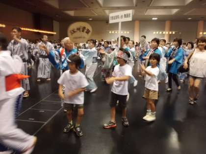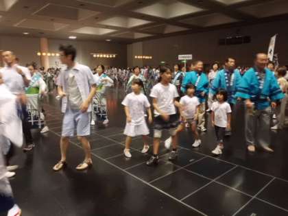 みやこめっせで行われた江州音頭フェスティバルに,本校から錦林キッズのメンバーが参加しました。このフェスティバルに向けて,地域の女性会の方々に教えていただきながら練習してきましたが,他のたくさんの参加者と共に約一時間,たっぷり踊りました。地域で行われた華やかなフェステバルに参加でき,錦林キッズのメンバーも満足そうな顔をしていました。