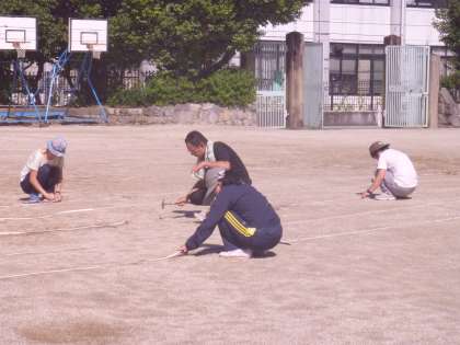 今日は,さっそく始まる運動会の練習のために,教職員みんなで運動場のラインテープを