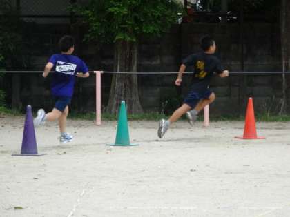 暑い毎日が続く夏休みの間も6年生の大文字チームは頑張っています。午前中たっぷりと走りこむ日もあれば,朝と夕方の2部練習を行う時もあります。地域の方にもお世話になりながらしんどい練習をみんなで頑張っています。5年生も6年生の姿を見て一緒に頑張っています。この暑い夏の頑張りが秋に発揮されることを信じてこれからも頑張る大文字チーム。みんなで応援しています!!