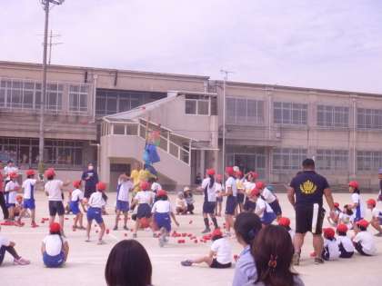運動会にぴったりの青空の下,なかよし運動会が開かれました。