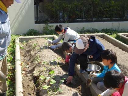 4組のみんなでこれまで育ててきたサツマイモを収穫しました。土から栄養をたっぷりもらい,そして太陽の光をいっぱいあびて,とても大きなサツマイモが収穫できました。錦林食堂がまた近々オープンしそうです。サツマイモ,どんなふうに調理するのでしょうね。今から楽しみです。