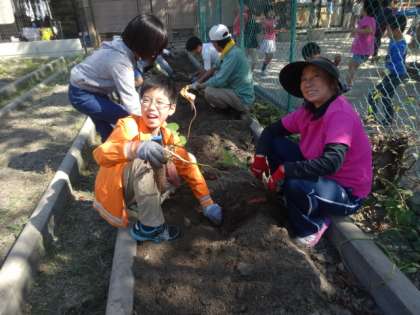 4組に続いて,チャレンジ隊もいもほりをしました。収穫を今か今かと楽しみにしていた錦林チャレンジ隊のメンバーたち。大きなおいもも出てきて大喜びでした。家でまたおいしくいただいてくださいね。次はキーウィの収穫を予定しています。お楽しみに。