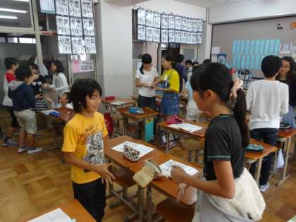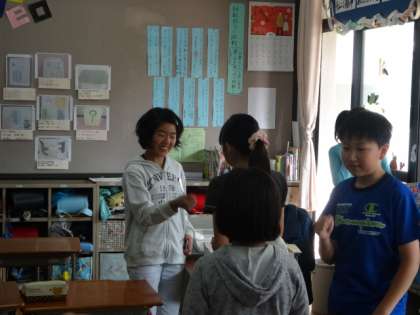 6年生の外国語活動の様子です。ALTの先生と一緒に学習する時もあれば,担任との学習の時もあります。チャンツを歌ったり,ゲームをしたり,インタビューし合ったりと,いろいろな活動を通して外国語に親しんでいます。今回は,自分と同じカードをもつ友だちを見つけるために,出会った友達と外国語で聞き合いました。これからも楽しく外国語活動を進めていきたいですね。