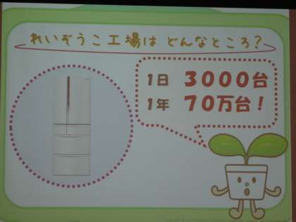 3年生は冷蔵庫工場へ社会見学に出かけました。錦林小学校41個分もの広さのある工場で,一日約3000台もの冷蔵庫が作られているそうなのですが,工場内に入って冷蔵庫が作られる様子をじっくり見学させてもらいました。工場内の方々もあたたかく歓迎してくださり,くわしく説明していただいてとても勉強になりました。