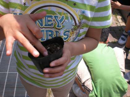 理科の学習でツルレイシの種植えをしました。一人ひとりポットに指で土に穴を開けて,丁寧にできました。成長が楽しみです。