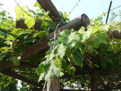 北庭の収穫の森にはいろいろな果物が育っています.棚ではブドウの実が出来始めています.まだ小さな実ですがどれくらい大きくなるか楽しみです.