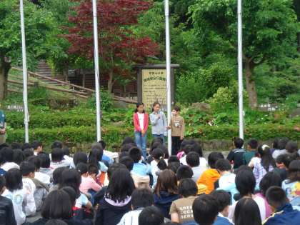 山の家長期宿泊学習は順調に日程が進んでいます.写真は今朝の集いの様子です.