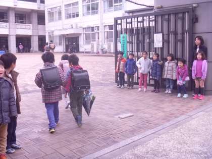 「大発見。みんなで声をそろえて,頭を下げて挨拶すると,頭を下げてにっこり挨拶してくれるよ。」2年生が今朝,挨拶運動をしていて,大発見を教えてくれました。