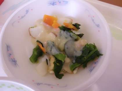 てっぱいは,かまぼこ・こんにゃく・にんじん・白ネギ・京野菜の花菜の具に,酢みそをかけていただきます。