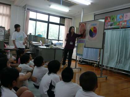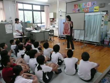今日は5年生の体重測定が保健室でありました.測定の前に養護教諭の先生から歯の健康についての指導がありました.