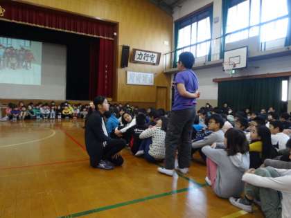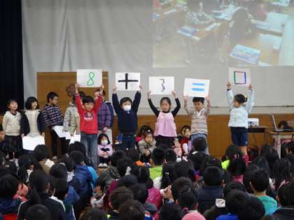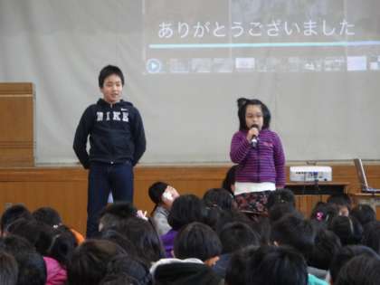 1年生は今年一年間でできるようになったことを発表しました。たくさんのことができるようになっていて,全校のみんなからも「1年生が一年間よく頑張ったことがわかりました。」という声が上がりました。