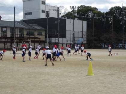 運動場では3年生が「サッカー」に,2年生が「パスゲーム」に取り組んでいました。暖かい日差しの下,元気にボールに向かうみんな。お互いに声をかけあいながら,それぞれにゲームを力いっぱい楽しんでいました。